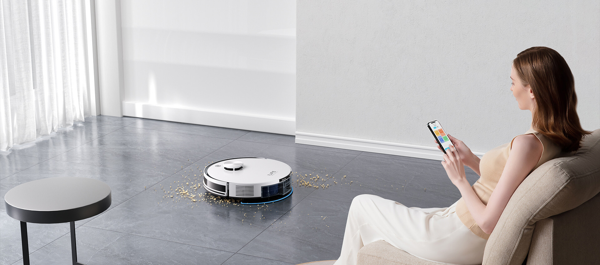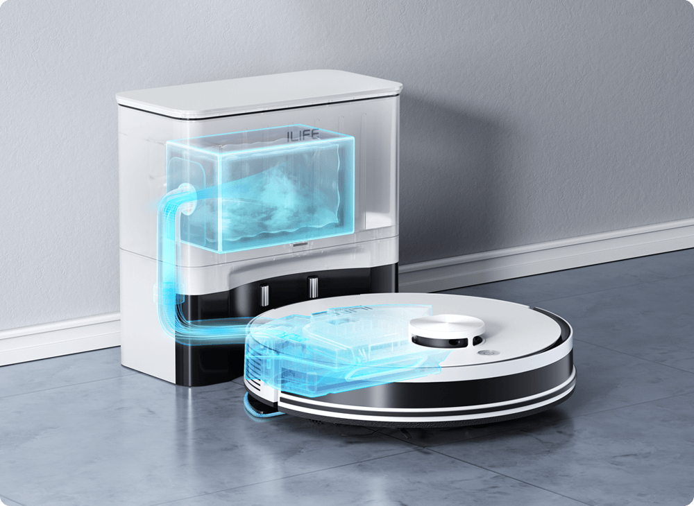 Ciesz się życiem bez wysiłku dzięki automatycznemu czyszczeniu. Stacja samoopróżniająca i worek na kurz minimalizują konserwację.