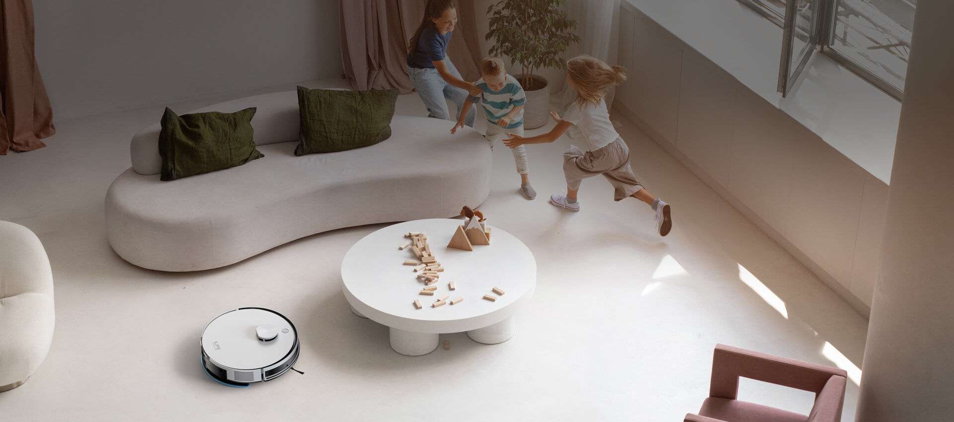 Bateria litowa zapewnia 180 minut w trybie cichym (powierzchnia 120㎡).