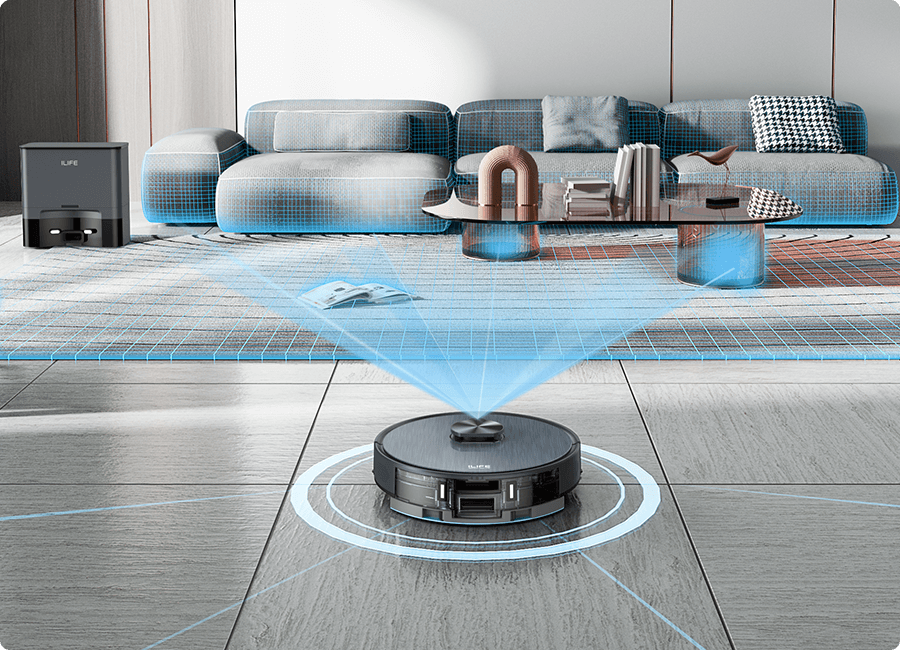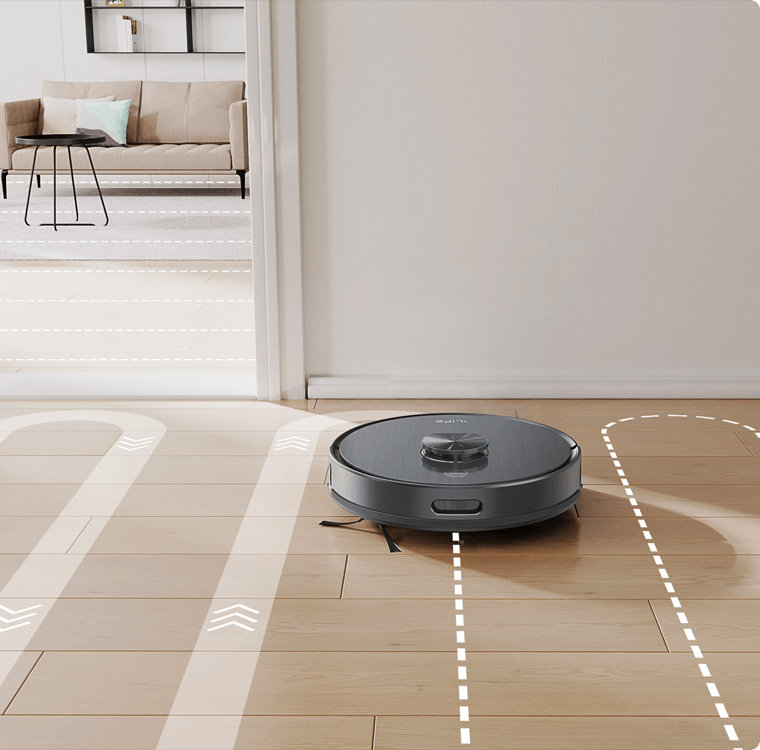 mapowanie dla większego zasięgu,tworząc najbardziej efektywną trasę sprzątania bez pominięć.