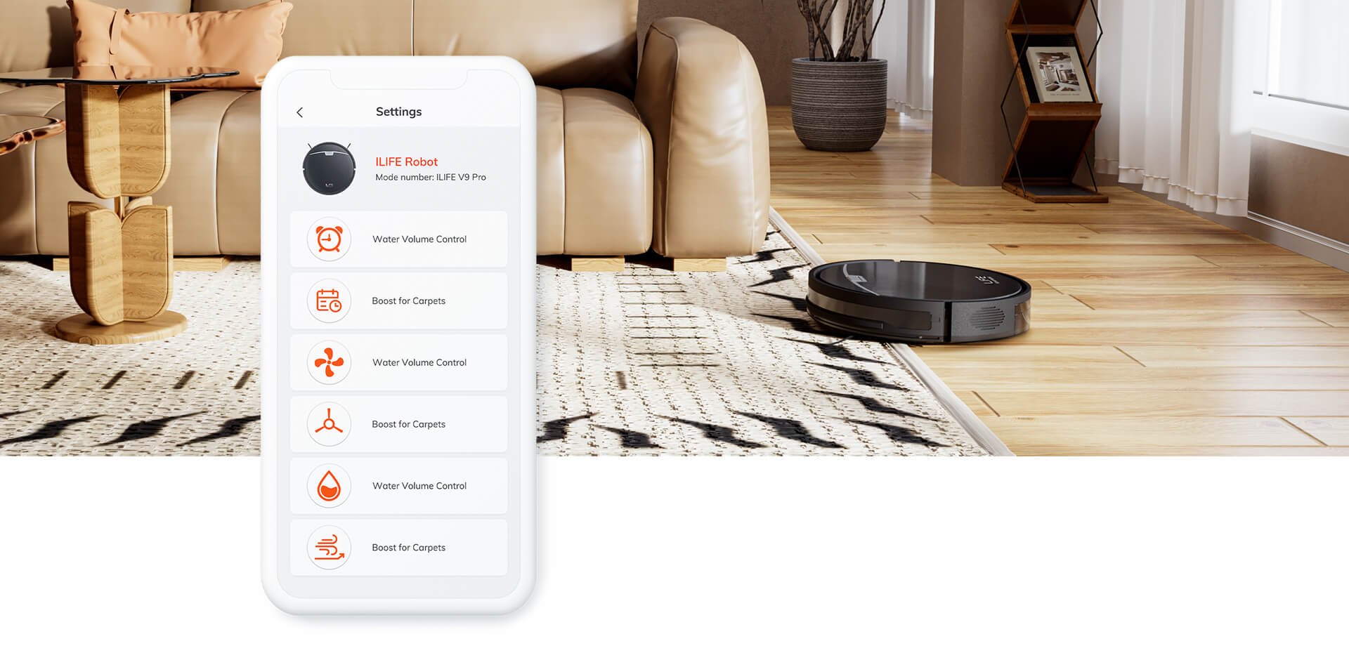 Łatwo zarządzaj zadaniami czyszczenia z dowolnego miejsca za pomocą aplikacji, z funkcjami takimi jak regulacja mocy ssania i harmonogramowanie.